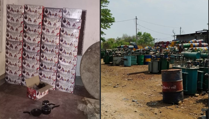 ಜೆಡಿಎಸ್ ಕಾರ್ಯಕರ್ತರ ಮಾಹಿತಿ ಮೇರೆಗೆ ಅಧಿಕಾರಿಗಳು ದಾಳಿ ಮಾಡಿ, 80ಕ್ಕೂ ಹೆಚ್ಚು ಕುಕ್ಕರ್ ಗಳನ್ನು ವಶಕ್ಕೆ ಪಡೆದಿದ್ದಾರೆ. ಅದರಲ್ಲಿ ಸಿಎಂ ಸಿದ್ದರಾಮಯ್ಯ, ಡಿಸಿಎಂ ಡಿ.ಕೆ. ಶಿವಕುಮಾರ್ ಸಂಸದ ಡಿ.ಕೆ ಸುರೇಶ್, ಶಾಸಕ ಡಾ. ರಂಗನಾಥ್ ಭಾವಚಿತ್ರವಿರುವ ಕುಕ್ಕರ್ ಬಾಕ್ಸ್ ಗಳನ್ನು ಟಿಸಿ ರಿಪೇರಿ ಮಾಡುವ ಗೋದಾಮಿನಲ್ಲಿ ಇರಿಸಲಾಗಿತ್ತು.