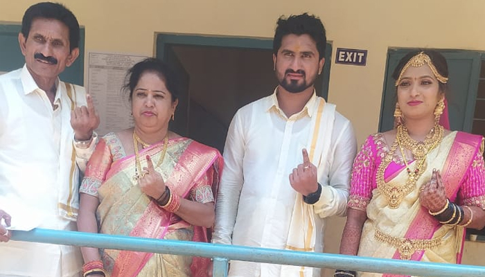 ನೂತನ‌ ವಧು ವರರು ಮತಗಟ್ಟೆ ಸಂಖ್ಯೆ 253 ರಲ್ಲಿ ಮತದಾನ ಮಾಡುವ ಮೂಲಕ ತಮ್ಮ ಹಕ್ಕು ಚಲಾವಣೆ ಮಾಡಿದರು.