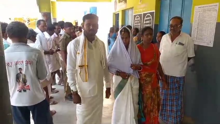 ಮತಗಟ್ಟೆಗೆ ಬಂದು ಮತ ಚಲಾಯಿಸಿದ ನವದಂಪತಿ