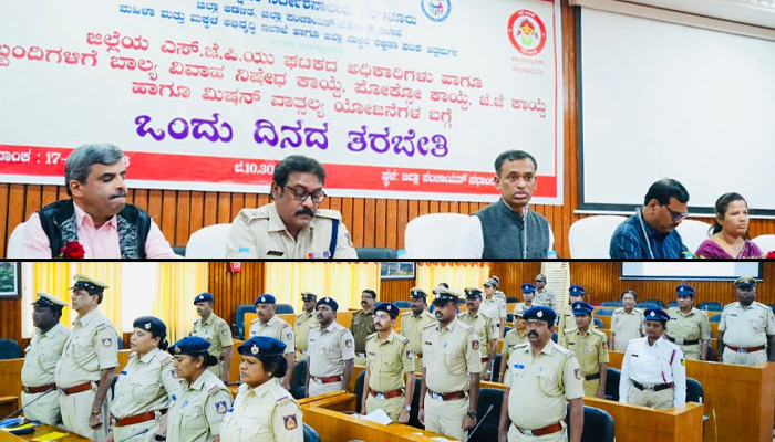 ನಗರದ ಜಿಲ್ಲಾ ಪಂಚಾಯತ್ ಸಭಾಂಗಣದಲ್ಲಿ ಮಂಗಳವಾರ ಮಕ್ಕಳ ರಕ್ಷಣಾ ನಿರ್ದೇಶನಾಲಯ, ಜಿಲ್ಲಾಡಳಿತ, ಜಿಲ್ಲಾ ಪಂಚಾಯತ್, ಪೊಲೀಸ್ ಇಲಾಖೆ, ಮಹಿಳಾ ಮತ್ತು ಮಕ್ಕಳ ಅಭಿವೃದ್ಧಿ ಇಲಾಖೆ, ಜಿಲ್ಲಾ ಮಕ್ಕಳ ರಕ್ಷಣಾ ಘಟಕ ವತಿಯಿಂದ ಜಿಲ್ಲೆಯ ಎಸ್ ಜೆಪಿಯು ಘಟಕದ ಅಧಿಕಾರಿಗಳು ಹಾಗೂ ಸಿಬ್ಬಂದಿಗಳಿಗೆ ಬಾಲ್ಯವಿವಾಹ ನಿಷೇಧ ಕಾಯ್ದೆ, ಪೋಕ್ಸೋ ಕಾಯ್ದೆ, ಜೆ.ಜೆ.ಕಾಯ್ದೆ ಹಾಗೂ ಮಿಷನ್ ವಾತ್ಸಲ್ಯ ಯೋಜನೆಗಳ ಕುರಿತು ಏರ್ಪಡಿಸಿದ ಒಂದು ದಿನದ ತರಬೇತಿ ಕಾರ್ಯಕ್ರಮ ಉದ್ಘಾಟಿಸಿ ಮಾತನಾಡಿದರು.