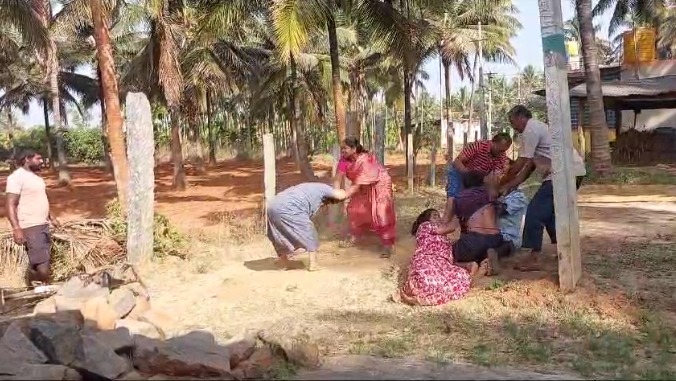 ಮಚ್ಚು ಹಿಡಿದು ಎರಡು ಕುಟುಂಬಗಳ ನಡುವಿನ ಕಾದಾಟದಲ್ಲಿ ಮಹಿಳೆಯರು ಪರಸ್ಪರ ಜುಟ್ಟು ಹಿಡಿದು ಬಡಿದಾಡಿಕೊಂಡಿದ್ದಾರೆ.
