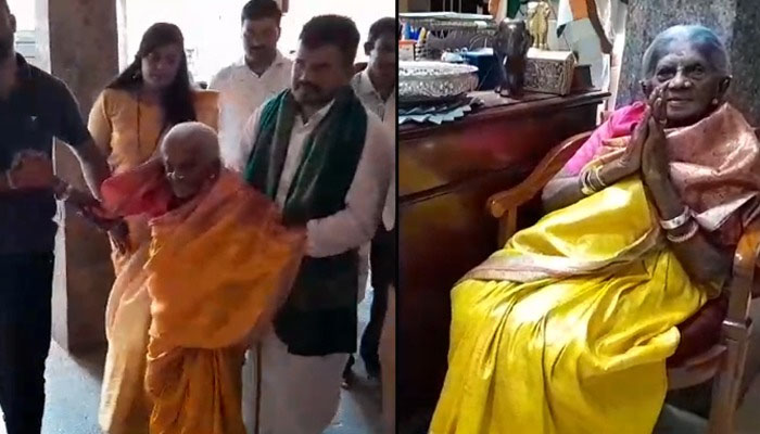 ತುಮಕೂರು: ಸಾಲುಮರದ ತಿಮ್ಮಕ್ಕ ಅವರ 113ನೇ ಜನ್ಮದಿನಾಚರಣೆ ಹಿನ್ನೆಲೆಯಲ್ಲಿ ಬೆಂಗಳೂರಿನಲ್ಲಿ ಹಮ್ಮಿಕೊಳ್ಳಲಾಗಿರುವ ಕಾರ್ಯಕ್ರಮಕ್ಕೆ ಆಹ್ವಾನಿಸಲು ತುಮಕೂರಿನ ಸಿದ್ದಗಂಗಾ ಮಠಕ್ಕೆ ಭೇಟಿ ನೀಡಿದ್ದರು.
