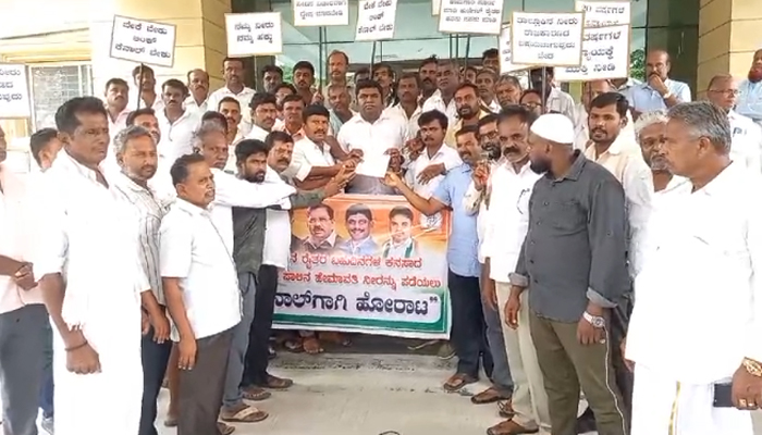 ಕುಣಿಗಲ್ ತಾಲ್ಲೂಕು ಕಚೇರಿ ಬಳಿ ನೂರಾರು ರೈತರಿಂದ ಪ್ರತಿಭಟನೆ ನಡೆಸಲಾಗಿದ್ದು ಹೇಮಾವತಿ ಲಿಂಕ್ ಕೆನಾಲ್ ಕಾಮಗಾರಿ ನಿಲ್ಲಿಸದಂತೆ ಒತ್ತಾಯಿಸಲಾಯಿತು.