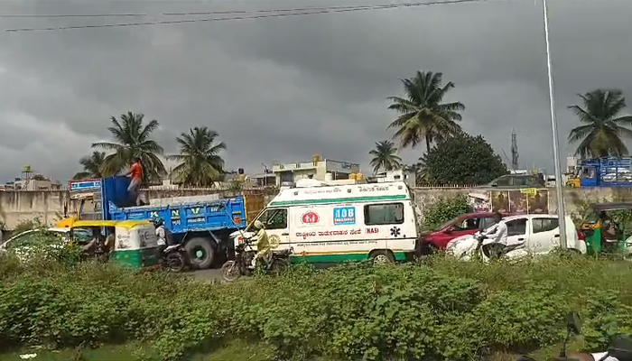 ಸುಮಾರು 15 ನಿಮಿಷಕ್ಕೂ ಹೆಚ್ಚು ಸಮಯ ಆ್ಯಂಬುಲೆನ್ಸ್ ಟ್ರಾಫಿಕ್ ನಲ್ಲಿ ಸಿಲುಕಿದೆ. ಹನುಮಂತದ ಬ್ರಿಡ್ಜ್ ಬಳಿ ನಾಲ್ಕು ಕಡೆಯಿಂದ ಬರುವ ವಾಹನಗಳಿಂದ ಉಂಟಾದ ಟ್ರಾಫಿಕ್ ಜಾಮ್ ನಡುವೆ ಆ್ಯಂಬುಲೆನ್ಸ್ ಸಿಲುಕಿತು.