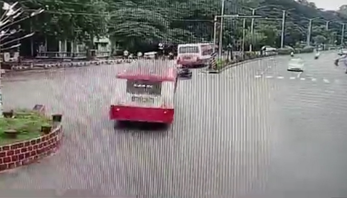 ತುಮಕೂರು: ನಗರದ ಶಿವಕುಮಾರ ಸ್ವಾಮೀಜಿ ವೃತ್ತದಲ್ಲಿ ಕೆಎಸ್ಆರ್ ಟಿಸಿ ಬಸ್ ಗೆ ಸಿಲುಕಿ ದ್ವಿಚಕ್ರ ವಾಹನ ಸವಾರರೊಬ್ಬರು ಮೃತಪಟ್ಟಿರುವ ಘಟನೆ ಸಿಸಿಟಿವಿಯಲ್ಲಿ ದಾಖಲಾಗಿದೆ.