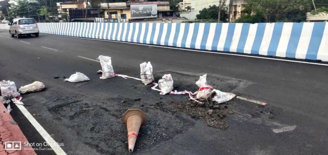 ಇದೇ ಅಕ್ಟೋಬರ್ 12ರಂದು ಮೇಲ್ಸೇತುವೆಯನ್ನು ಉದ್ಘಾಟಿಸಲಾಗಿತ್ತು. ಆದರೆ, ಸೇತುವೆಯ ಮಧ್ಯದಲ್ಲಿ ಗುಂಡಿಗಳು ಬಿದ್ದಿವೆ.