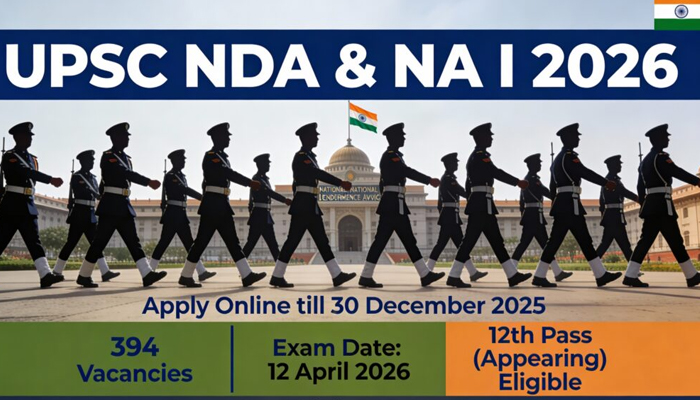 ಕೇಂದ್ರ ಲೋಕಸೇವಾ ಆಯೋಗವು (UPSC) 2026ರ ಸಾಲಿನ ರಾಷ್ಟ್ರೀಯ ರಕ್ಷಣಾ ಅಕಾಡೆಮಿ (NDA) ಮತ್ತು ನೌಕಾ ಅಕಾಡೆಮಿ (NA-I) ಪರೀಕ್ಷೆಯ ಅಧಿಕೃತ ಅಧಿಸೂಚನೆಯನ್ನು ಹೊರಡಿಸಿದೆ. ಭಾರತೀಯ ಭೂಸೇನೆ, ನೌಕಾಪಡೆ ಮತ್ತು ವಾಯುಪಡೆಯಲ್ಲಿ ಅಧಿಕಾರಿಯಾಗಬಯಸುವ ಯುವಕ-ಯುವತಿಯರಿಗೆ ಇದು ಸುವರ್ಣಾವಕಾಶವಾಗಿದೆ.