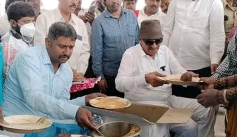 ಒಂದು ರೂಪಾಯಿಗೆ ರಾಗಿ ಮುದ್ದೆ, ಸಾರು ವಿತರಿಸಿ ವಾಟಾಳ್ ನಾಗರಾಜ್ ಪ್ರತಿಭಟನೆ