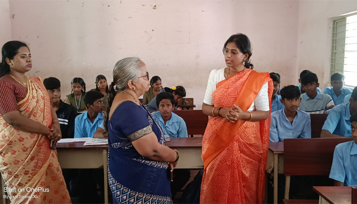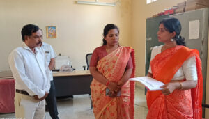 ಮಹಾತ್ಮ ಗಾಂಧಿ ಸರ್ಕಾರಿ ಪದವಿ ಪೂರ್ವ ಕಾಲೇಜಿನ ಪ್ರೌಢಶಾಲಾ ವಿಭಾಗದ ೧೦ನೇ ತರಗತಿ ಕೊಠಡಿಗೆ ಭೇಟಿ ನೀಡಿ ವಿದ್ಯಾರ್ಥಿಗಳ ಹಾಜರಾತಿ ಪರಿಶೀಲಿಸಿದ ಅವರು ಗೈರು ಹಾಜರಾಗಿದ್ದ ೧೩ ವಿದ್ಯಾರ್ಥಿಗಳ ಬಗ್ಗೆ ಮಾಹಿತಿ ನೀಡದ ಶಿಕ್ಷಕರನ್ನು ತರಾಟೆಗೆ ತೆಗೆದುಕೊಂಡು, ವಿದ್ಯಾರ್ಥಿಗಳ ಹಾಜರಾತಿ ಬಗ್ಗೆ ನಿಗಾ ವಹಿಸಬೇಕೆಂದು ತಿಳಿಸಿದರು.