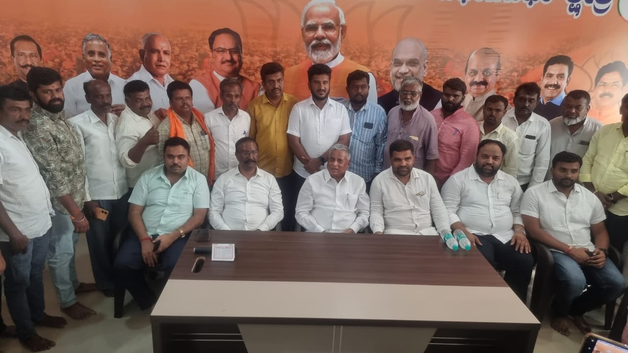ಕೊರಟಗೆರೆ ಪಟ್ಟಣದ ಪಂಚಾಜನ್ಯ ಕಚೇರಿಯಲ್ಲಿ ನಡೆದ ಸಭೆಯಲ್ಲಿ ಬಿಜೆಪಿ ಅಭ್ಯರ್ಥಿ ವಿ.ಸೋಮಣ್ಣ ಸೇರಿದಂತೆ ಮುಖಂಡರು.