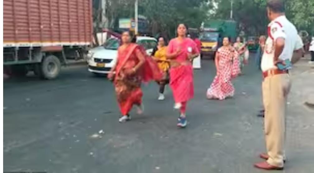 ಬೆಂಗಳೂರು: ಬೆಂಗಳೂರಿನಲ್ಲಿ ಬೆಳ್ಳಂಬೆಳಗ್ಗೆ ನಾರಿಯರು ಸೀರೆಯುಟ್ಟು ರಸ್ತೆಗಿಳಿದ ದೃಶ್ಯ ಕಂಡು ಬಂತು.ಮಾತ್ರವಲ್ಲ ಬರೋಬ್ಬರಿ ಎರಡು ಕಿಮೀ ರನ್ನಿಂಗ್ ನ್ನು ಮಾಡಿದ್ದು ವಿಶೇಷವಾಗಿತ್ತು.